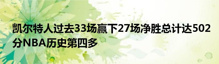 根據相關數據統計,凱爾特人在過去的33場比賽中贏下了27場,總共贏了對手504分。在NBA歷史上,只有3支球隊能在33場比賽中得到比這更多的凈勝分,分別是:雄鹿、湖人、馬刺。