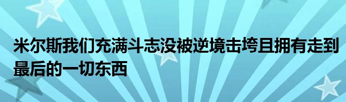 談到對于今日比賽滿意的部分,米爾斯說道:“這個賽季我們遭遇了逆境,但我們沒有被擊垮,會有回報的。”