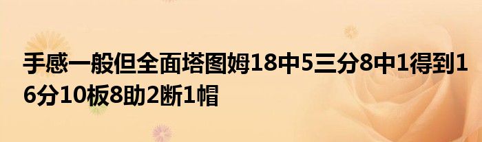 本場比賽,凱爾特人球星塔圖姆手感一般但表現全面,他出場30分鐘,投籃18中5,三分8中1,罰球7中5,得到16分10籃板8助攻2搶斷1蓋帽,出現2次失誤,正負值+22。
