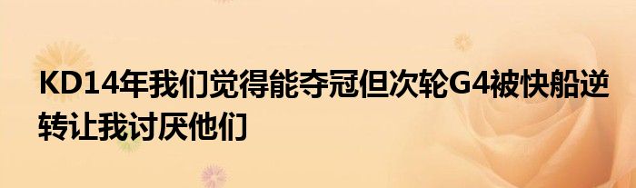 “在2011、12、13年的時(shí)候,我們沒有想過進(jìn)總決賽。14年的時(shí)候,更衣室的聲音和雷霆周圍的人都覺得我們能夠贏下總冠軍了。第二輪G4的時(shí)候我們大比分領(lǐng)先進(jìn)入第四節(jié),結(jié)果被你們逆轉(zhuǎn),我們本能3-1你們的。我第一次感覺到了季后賽的波折。我TM討厭那支快船隊(duì),每個(gè)人都討厭他們。”KD說道。