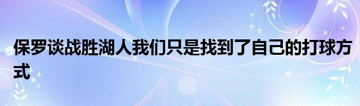 談到這場勝利,保羅表示:“我們只是回到了主場觀眾面前,找到了自己的打球方式。”