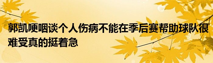 當談到自己帶傷打了一個賽季的比賽,郭凱不禁哽咽道:“其實,感覺挺對不起球隊,我也很著急,但是傷病不可能恢復得那么快。沒有辦法在季后賽這么關鍵的時刻幫助到球隊,真的挺著急,也很難受。郭導不想讓我帶著傷打球,雖然我一直說可以,但在場上腿還是發不上力,無法支撐季后賽級別的比賽,幫助不了球隊就很難受。”