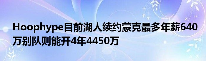 據此前報道,湖人和蒙克雙方都有意繼續合作。目前來看,合作的方式除了640萬的特例,只剩250萬的底薪。
