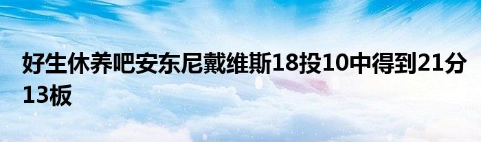 此役,湖人球星安東尼-戴維斯出戰35分半,18投10中,2罰1中,得到21分13板1助1斷1帽。