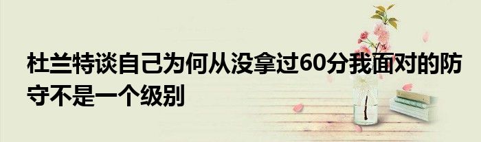 我都是在兩個人頭上出手,這樣可很難砍60分。我必須在比賽中立刻就對方的調整進行調整。他們可不會等到賽后再去后悔沒包夾我,他們會立刻做出調整。”杜蘭特說道。