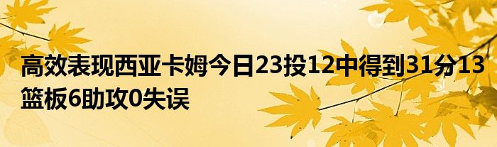 本場比賽,猛龍球員西亞卡姆出戰40分鐘24秒,23投12中,三分4中1,罰球8中6,全場得到31分13籃板6助攻1搶斷1蓋帽,并且沒有失誤。
