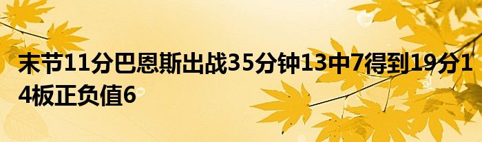 全場(chǎng)比賽,巴恩斯出戰(zhàn)35分24秒,投籃13中7,三分3中1,罰球7中4,得到19分14籃板,正負(fù)值+6。