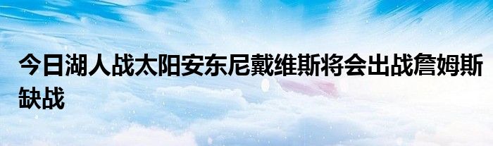 湖人官方更新傷病報(bào)告,安東尼-戴維斯將會(huì)出戰(zhàn)本場(chǎng)比賽。