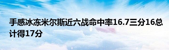 據統計,最近六場比賽,米爾斯30投5中,命中率僅16.7%。三分更是25次出手僅命中4球,命中率低至16%。