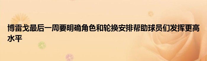 他談到常規賽即將接近尾聲:“進入這最后一周,我認為需要讓球員們明確自己的角色和輪換安排,這將幫助他們發揮出更高的水平。”