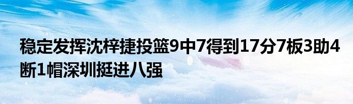 深圳隊中鋒沈梓捷今日繼續(xù)自己的高效發(fā)揮,出戰(zhàn)42分28秒,投籃9中7,罰球3中3,得到17分7籃板3助攻4搶斷1蓋帽,且沒有失誤,正負值高達+27。