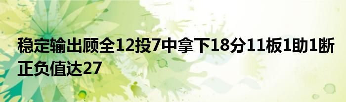 本場比賽,深圳球員顧全12投7中,得到18分11籃板1助攻1搶斷,正負(fù)值達(dá)+27。