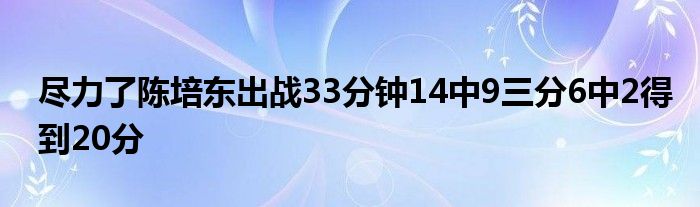 全場比賽,陳培東出戰32分56秒,投籃14中9,三分6中2,得到20分2籃板3助攻,正負值+3。