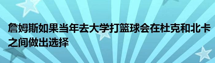 詹姆斯:好吧,如果有那個平行時空,那么我會。。當然這會讓很多球迷不開心。。我會在杜克大學和北卡大學之間做出選擇。