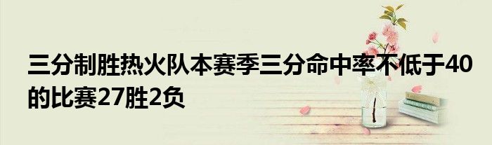 據(jù)統(tǒng)計,本賽季熱火隊在三分球命中率不低于40%的比賽中,取得27勝2負(fù)的戰(zhàn)績。