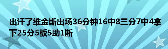 本場比賽,勇士球員維金斯出場36分鐘,投籃16中8,三分7中4,罰球6中5,拿下25分5籃板5助攻1搶斷,出現1次失誤。