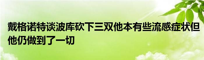 在談到波庫本場拿到了生涯首個三雙時,戴格諾特表示:“其實他有一些流感的癥狀,但今天早些時候他擺脫了那些癥狀。一旦他找回狀態(tài),他就會變得很棒,他今天做到了一切,甚至是在防守端,他真的非常非常棒。”