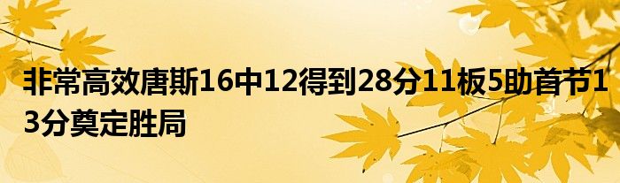 森林狼球員唐斯本場比賽表現亮眼,他全場出戰35分鐘,16投12中,三分3中1,罰球5中3,得到了28分11籃板5助攻1搶斷1蓋帽的數據,其中首節比賽中唐斯8中6獨攬13分6板,幫助球隊奠定勝局。