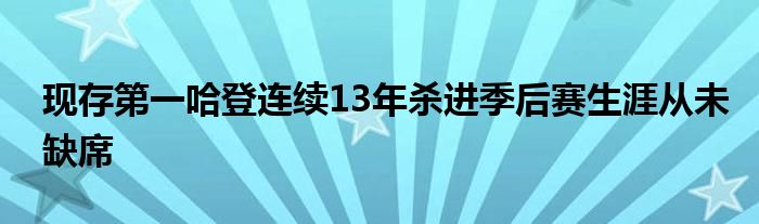 這樣,哈登已經(jīng)連續(xù)13年率隊(duì)殺進(jìn)季后賽,生涯從未缺席。