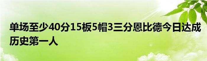 據統計,恩比德是NBA歷史第一位在單場得到至少40分15籃板5蓋帽,且命中3個三分的球員。