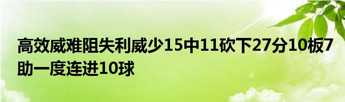 此役,威少表現非常高效,運動戰15投11中,期間更是一度連續命中10球,但是依然沒能阻止湖人失利。