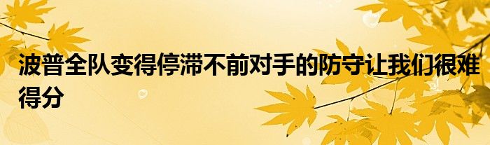 談到本場(chǎng)失利,波普表示:“我們?nèi)?duì)變得停滯不前,沒(méi)有做好傳導(dǎo)球。我們沒(méi)法更靠近籃筐得分。對(duì)手的防守做得很出色,他們從一號(hào)位到五號(hào)位都能進(jìn)行換防,這讓我們的得分變得很困難?!?/p>