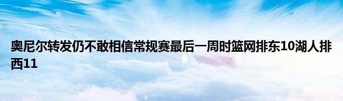 奧尼爾轉(zhuǎn)發(fā)ESPN作者Ohm Youngmisuk的推特:“我仍然不敢相信當(dāng)本賽季常規(guī)賽進(jìn)行到最后一周時,籃網(wǎng)竟排在東部第10,而湖人排名西部第11。”