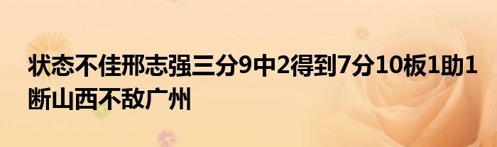 山西隊球員邢志強今日手感冰涼,出戰40分26秒,出手11次僅命中2球,三分線外9中2,罰球2中1,得到7分10籃板1助攻1搶斷,另外賠上4次犯規,正負值-14。