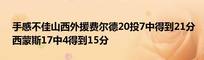 山西兩位外援手感一般,費爾德全場出戰28分鐘,20投7中,三分7中1,罰球8中6得到21分8籃板7助攻1搶斷。