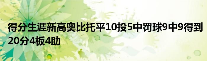 此役,尼克斯前鋒奧比-托平出戰30分鐘,10投5中,三分4投1中,罰球9罰全中,得到生涯新高的20分,外加4籃板4助攻1搶斷的數據,被侵犯次數為7次,全場最高。