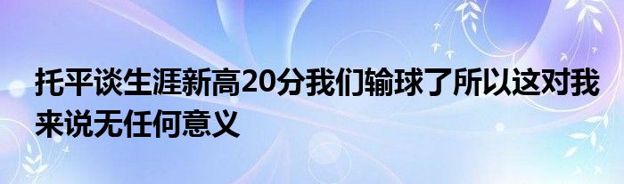談到自己本場取得生涯新高的20分,托平表示:“我們今天輸球了,所以這對我來說沒有任何的意義。”