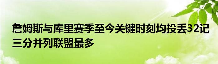 湖人球星詹姆斯與勇士球星庫里本賽季關鍵時刻均投丟32記三分,并列聯盟最多。在此期間,詹姆斯的三分命中率為26%,庫里的三分命中率為18%。