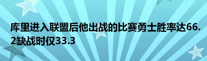 比賽直播畫面給出勇士在庫里出戰與缺戰時的比賽勝率,自打庫里進入聯盟開始,當庫里出戰時勇士勝率為66.2%,庫里缺戰時勇士勝率僅33.3%。