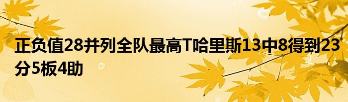 此役,76人前鋒托拜亞斯-哈里斯打出了高效水準,他出戰32分鐘,13投8中,三分9投5中,罰球2罰2中,得到23分5籃板4助攻1搶斷的數據,+28的正負值和隊友塞布爾并列全場最高!