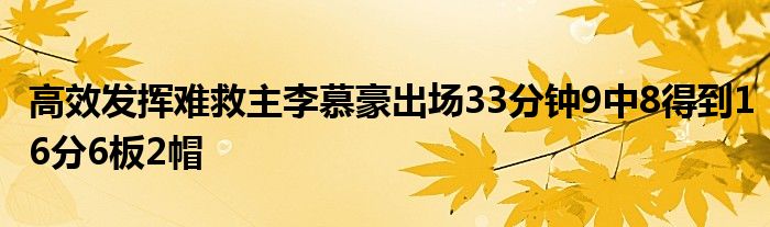 北京中鋒李慕豪出場33分鐘,投籃9中8,得到16分6籃板1助攻2蓋帽3失誤。