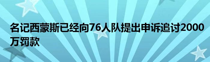 4月2日訊名記Woj和Shelburne聯合報道,西蒙斯已經向76人隊提出申訴追討2000萬罰款。