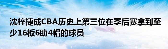 據(jù)統(tǒng)計,沈梓捷是CBA歷史上第三位在季后賽拿到至少16籃板6助攻4蓋帽的球員。