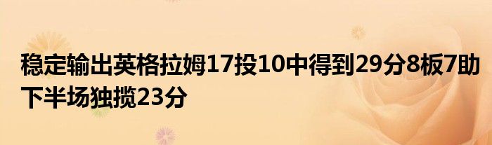 英格拉姆在上半場表現一般,下半場爆發11投7中,9罰9中獨攬23分,幫助球隊拿下勝利。