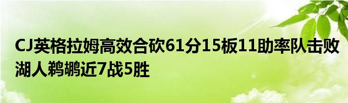本場比賽鵜鶘雙槍英格拉姆和CJ麥科勒姆合砍61分15籃板11助攻,投籃命中率55%,三分命中率40%,罰球命中率100%。
