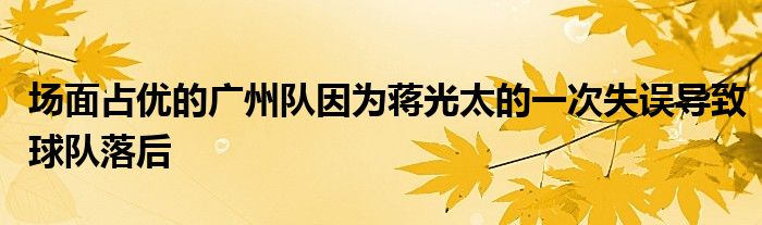 北京時(shí)間7月4日15:30,中超第8輪,廣州隊(duì)對陣武漢長江。上半場不到20分鐘,場面占優(yōu)的廣州隊(duì),因?yàn)槭Y光太的一次失誤,導(dǎo)致球隊(duì)0-1落后。