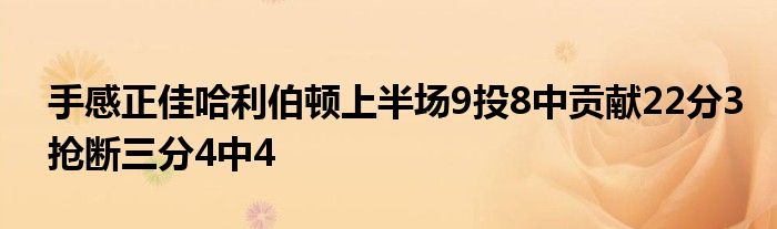 上半場,哈利伯頓9投8中,三分4投4中,罰球2罰2中,貢獻22分2助攻3搶斷。