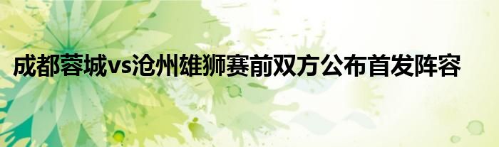 北京時間7月4日19:30,中超第8輪,成都蓉城vs滄州雄獅,賽前雙方公布首發陣容。