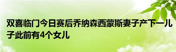 賽后,山西官方微博發布消息稱西蒙斯妻子順利產下一個兒子,這將是西蒙斯與妻子的第5個孩子,而前4個都是女兒。