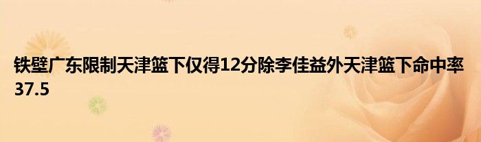 本場比賽廣東限制天津的籃下得分僅為12分。除去李佳益,天津其他隊員在籃下8投3中,命中率僅為37.5%。