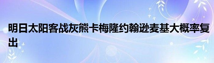 卡梅隆-約翰遜、麥基大概率將在本場比賽迎來復出。