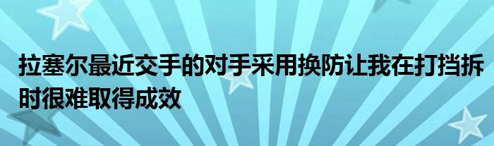 拉塞爾在今日接受采訪的時候談到了此事,拉塞爾說道:“有時候對手的防守并不適合打擋拆,我們最近交手的幾支球隊都換防了,所以我很難讓自己在打擋拆的時候取得成效。”
