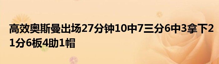 值得一提的是,末節比賽奧斯曼投籃6中4,單節砍下12分2籃板1助攻1蓋帽。