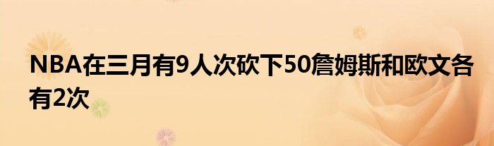 這樣一來,NBA在三月有9人次砍下50+,其中詹姆斯和歐文各有2次,杜蘭特、塔圖姆、唐斯、德羅贊、薩迪克-貝各1次。
