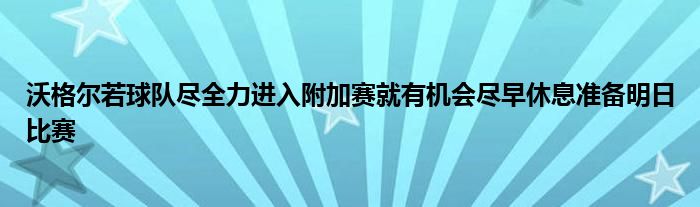 賽后湖人主帥沃格爾接受采訪時表示:“我們知道,如果球隊全力以赴進入附加賽,我們就有機會。我們將盡快坐上飛機,讓伙計們休息好,為明天做好準備。”
