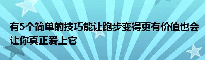 跑步是項(xiàng)很神奇的運(yùn)動(dòng),它不但會(huì)消耗大量能量,讓我們付出艱苦努力,還會(huì)使人精疲力盡甚至喘不上氣。但跑者卻樂(lè)在其中,而且敢說(shuō)是愛(ài)跑步。當(dāng)然,也不是每個(gè)人都愛(ài)跑步。如果你屬于后者,那這里有5個(gè)簡(jiǎn)單的技巧能讓跑步變得更有價(jià)值,也會(huì)讓你真正愛(ài)上它: